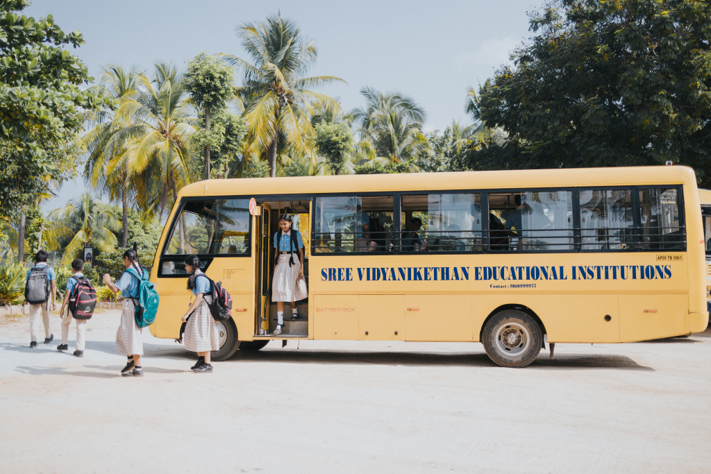 Safe transport is non-negotiable at SVIS. Every bus and van meets strict safety standards and undergoes regular inspections. All vehicles are equipped with s eat belts, emergency exits, and first-aid kits.